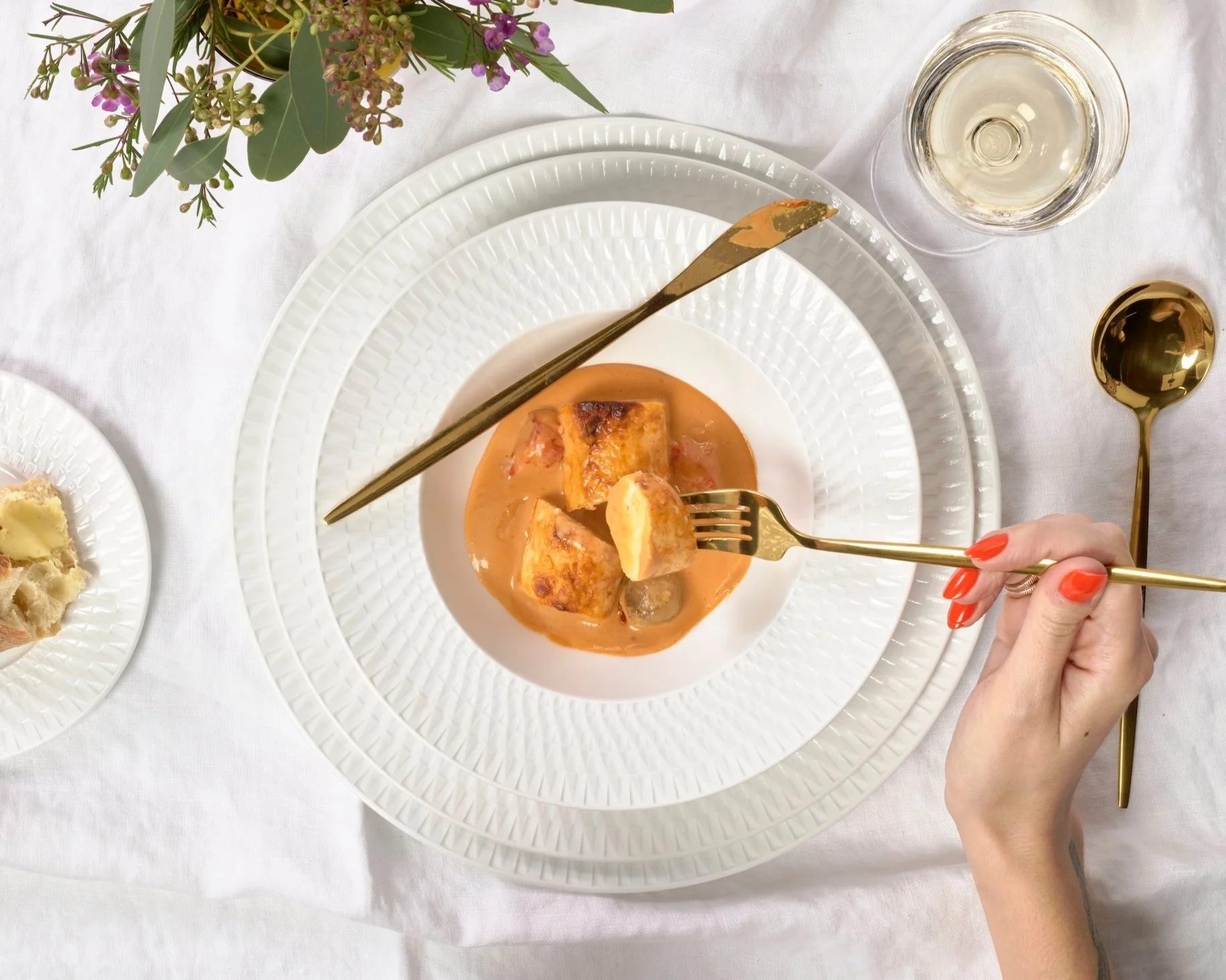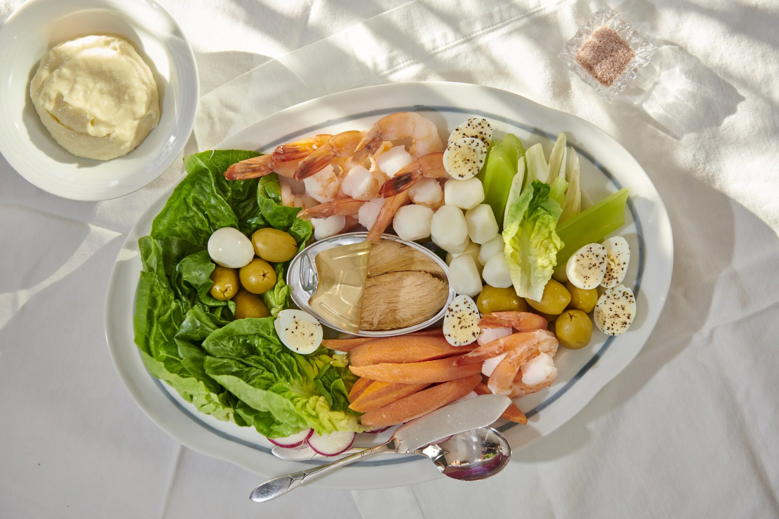 It's a gorgeous set on the table! And a perfect way for guests to settle into the meal. We love it with a crisp white wine.