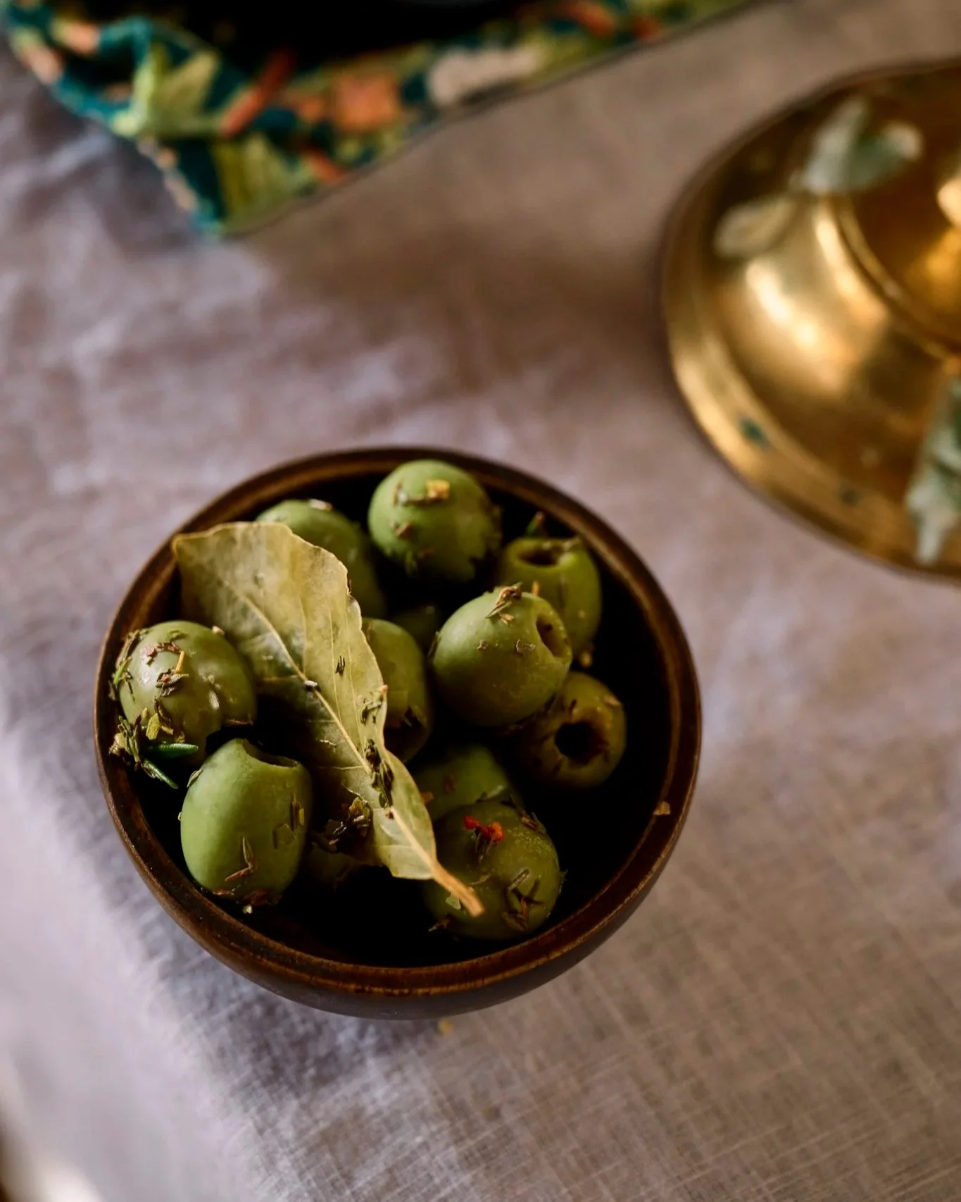 Pour the infused oil over the olives. Refrigerate until you’re ready to serve.