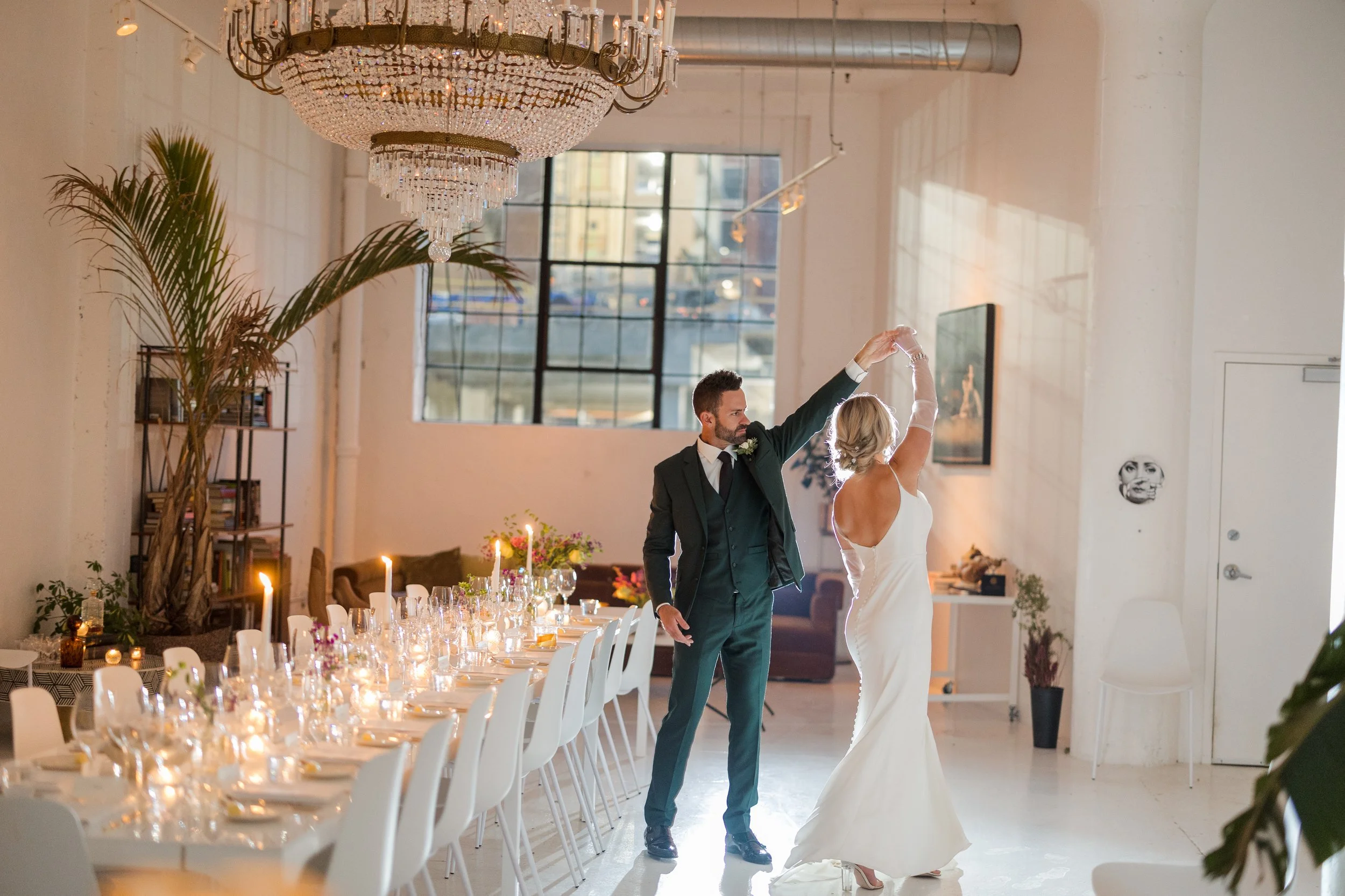 Designed for couples who want something intimate and intentional. Perfectly curated details for up to 48 guests. Be a guest at your own wedding with a 4 course dinner by a James Beard chef in our stunning North Loop studio.